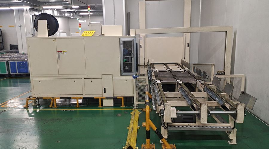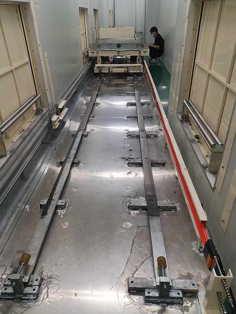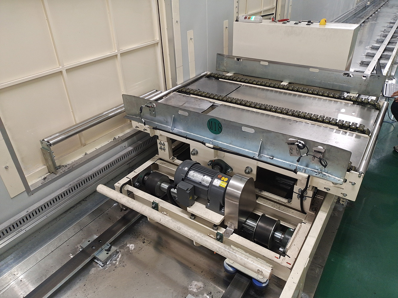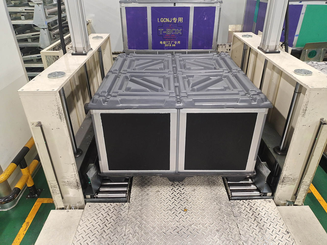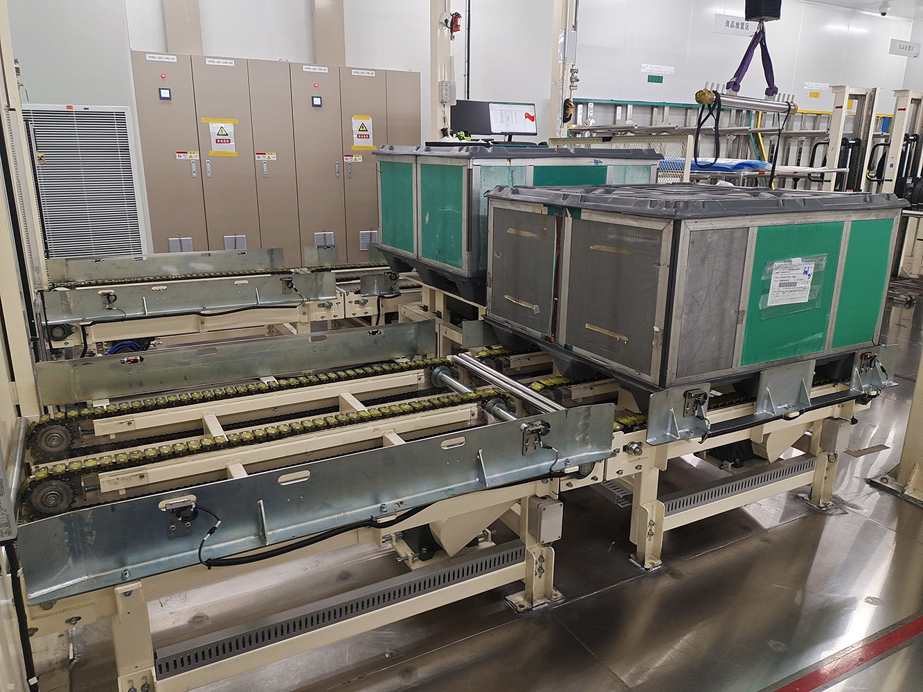 该系统将空T-BOX送入室内不同装包区域,装包完T-BOX通过物流完成自动化打包。该系统包含升降物流线、旋转物流线、RGV有轨小车、牙叉移栽设备、室内洁净航吊系统、自动打包机、360度旋转物流线及配套的安全防护设备。