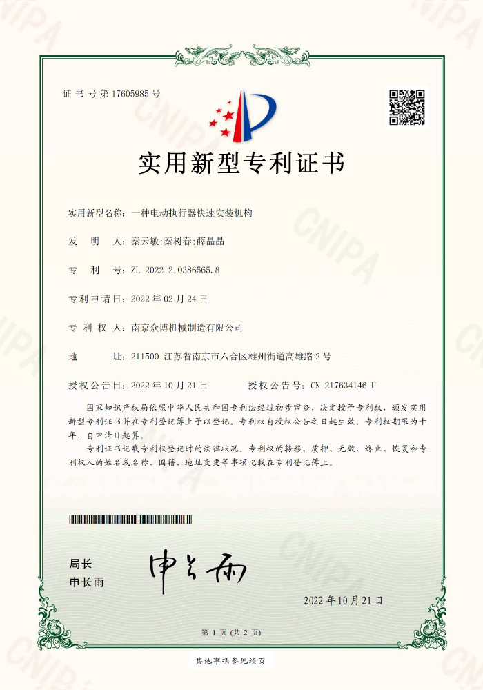 Patent certificate