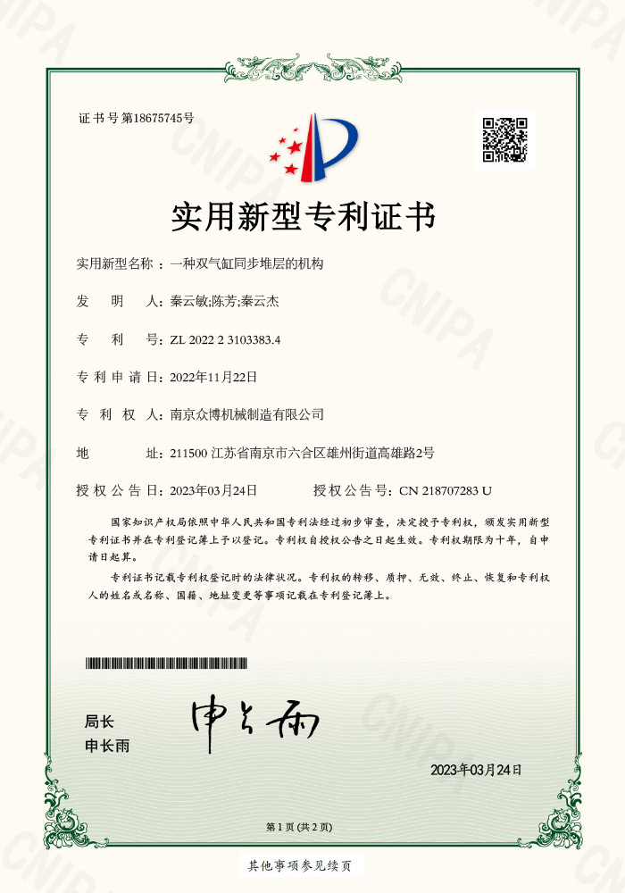 A dual cylinder synchronous stacking mechanism